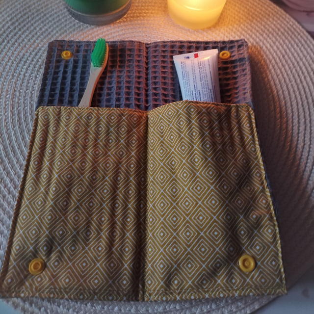 Porte dentifrice/ Brosse à dents - moutarde losange blanc