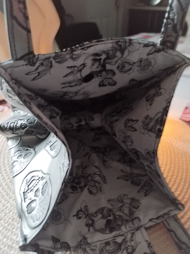 Sac en simili cuir "têtes de morts" et tissu "têtes de morts avec papillons"